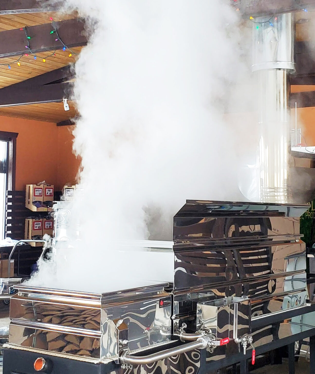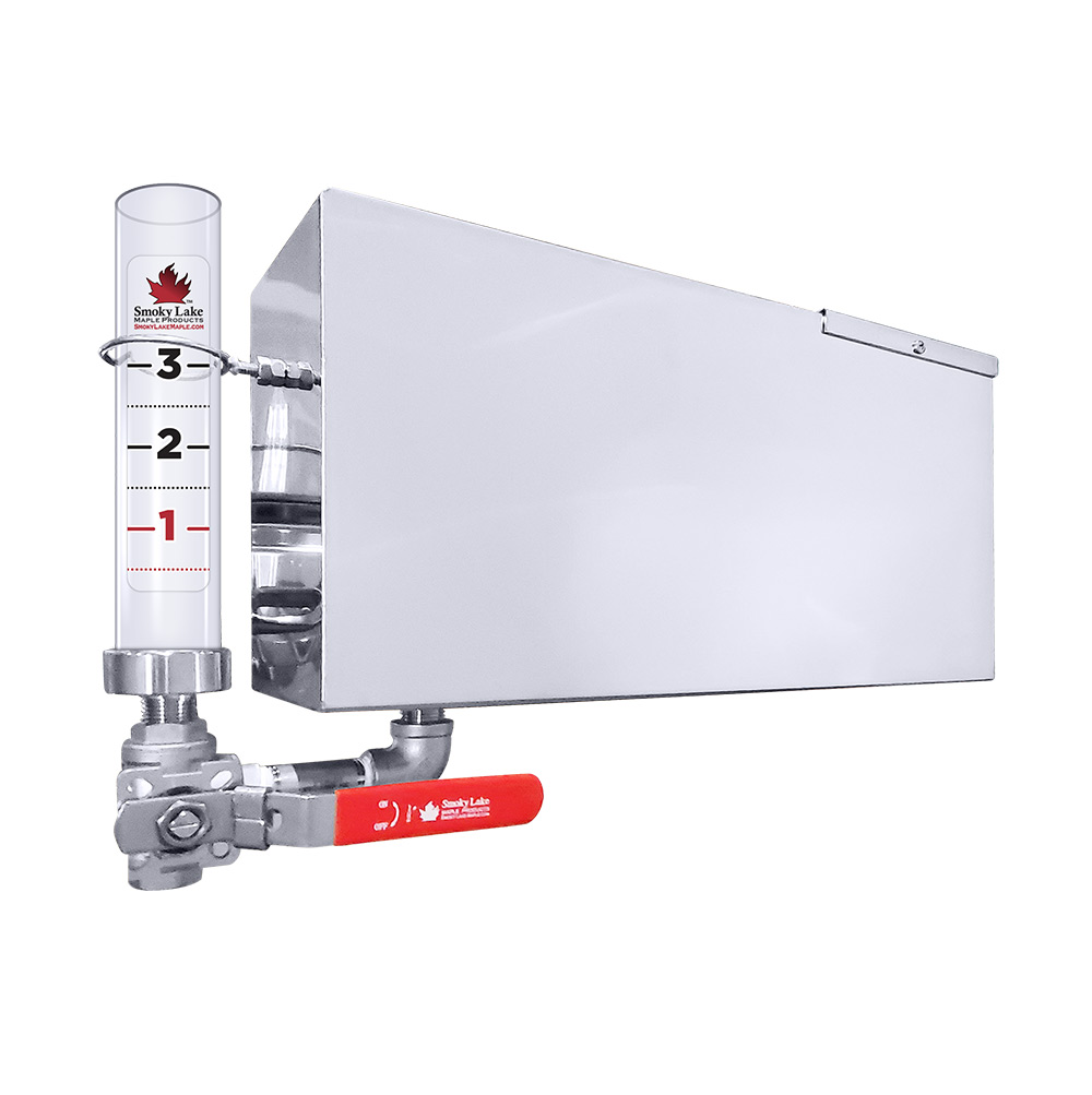 Next, what SIZE evaporator are you envisioning? If larger than a 2′ x 6′, we typically encourage the Raised Flue option. This is because the head pressure from the Raised Flue Pan will allow sap to recover more quickly in the Front Pan whenever you draw off syrup.
