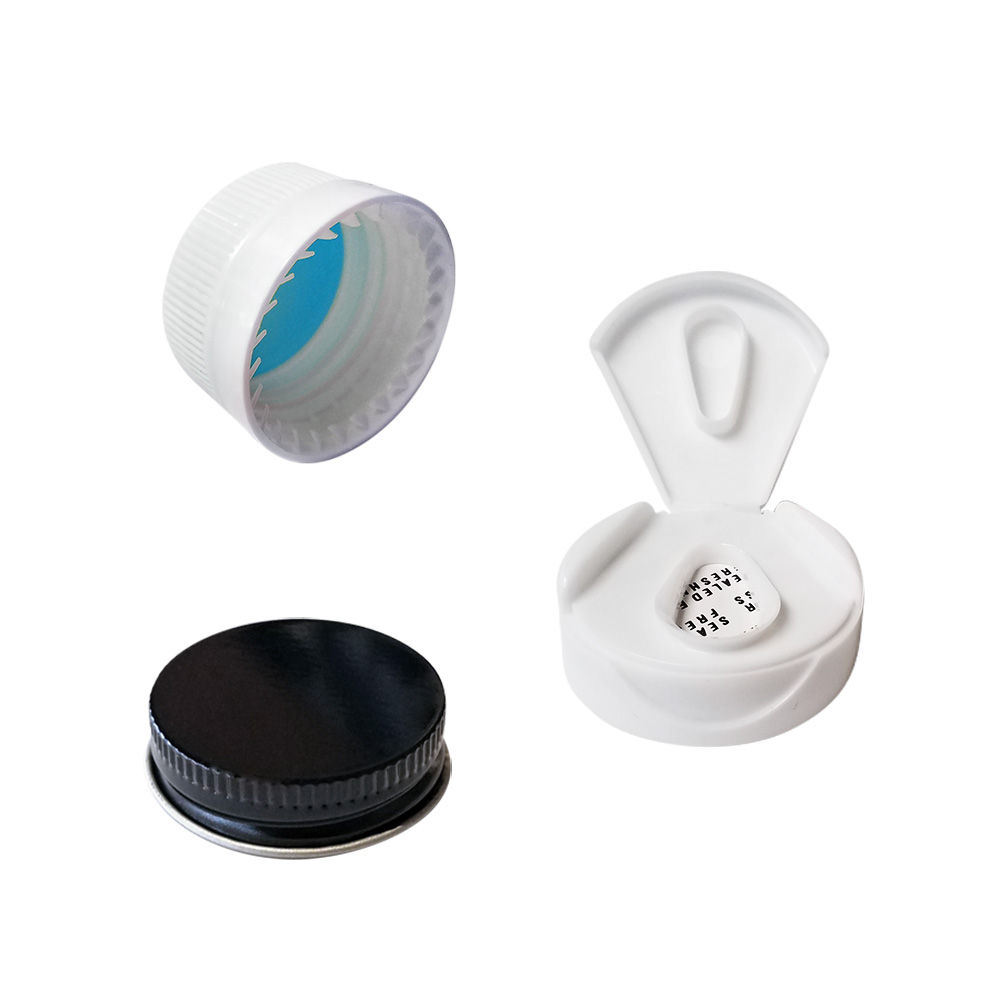 Various bottles with caps
