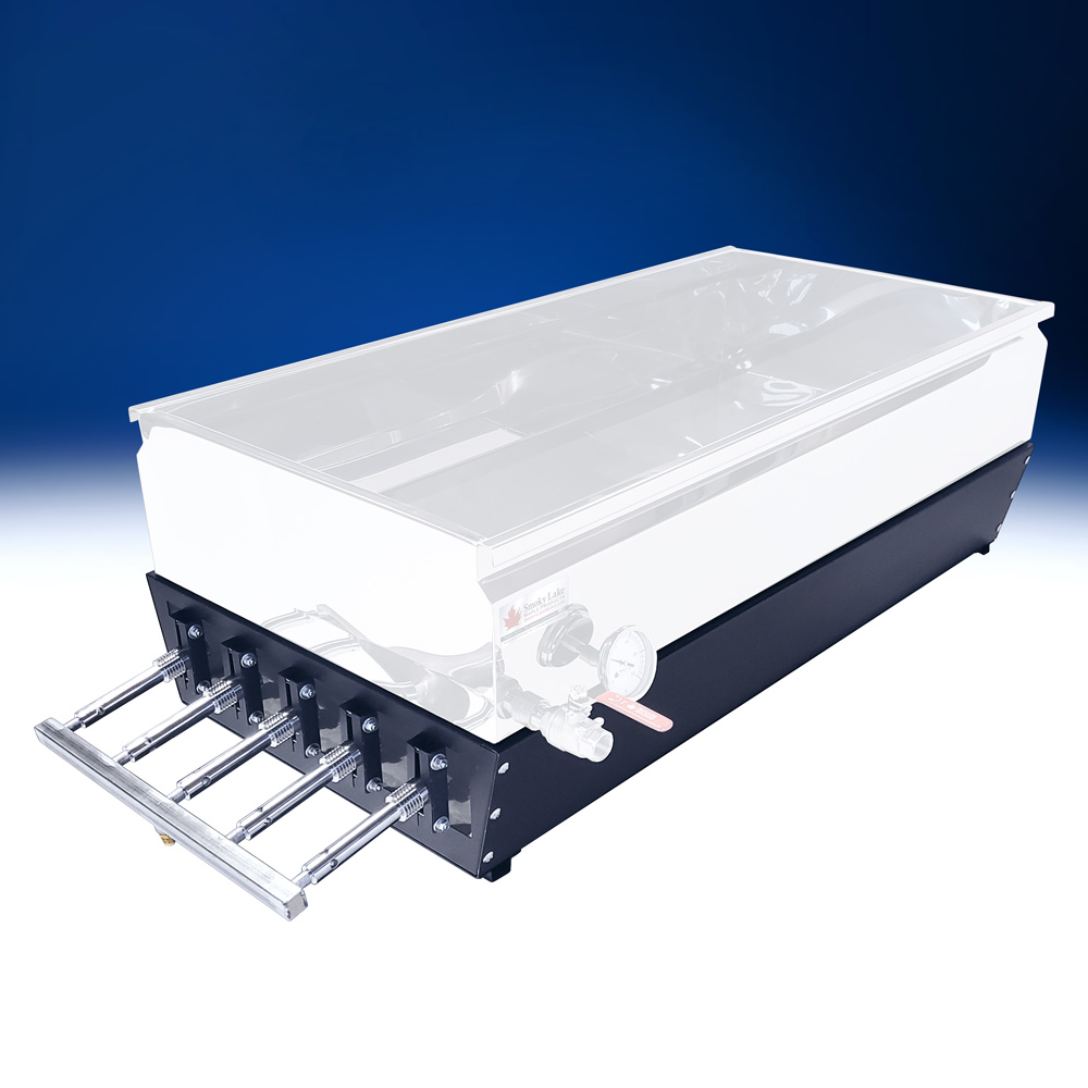This is a handcrafted, table-top propane finishing unit containing FIVE Smoky Lake LP jet burners. The high quality arch body is fully insulated, which guarantees superior efficiency and a definite “wow” factor while boiling. The unit is applauded for its great functionality and high performance.