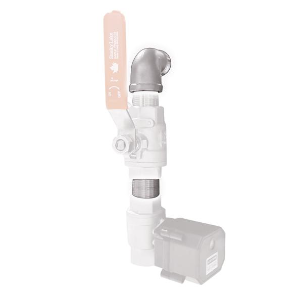 These two hardware pieces are used to attach a 3/4″ Automated Valve (from a Smoky Lake Auto Draw-Off System) to a 3/4″ NPT female fitting on an evaporator pan.