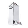 This is a filter pan made specifically to mount cone filters and prefilters. The pan is built out of mirror finish stainless steel and features a double hemmed upper lip. A thermometer port, drain port, mounts, and cover are included. Dimensions, 9″ x 9″ x 24″. Total capacity = 8.4 gallons. Capacity while using a cone filter is approximately 4 – 5 gallons.