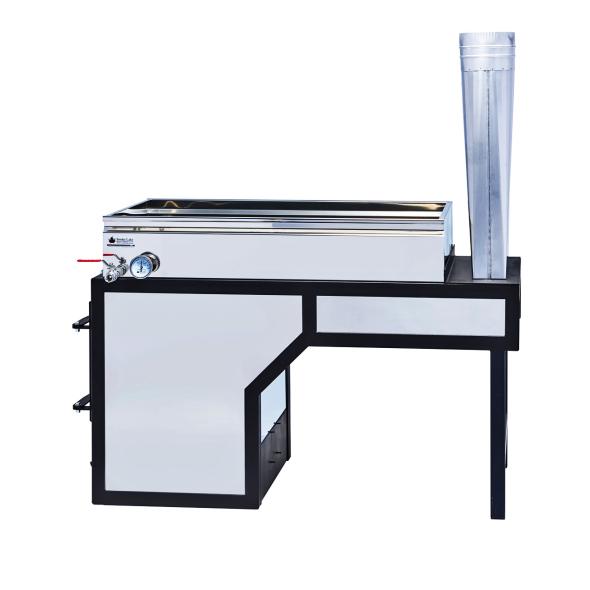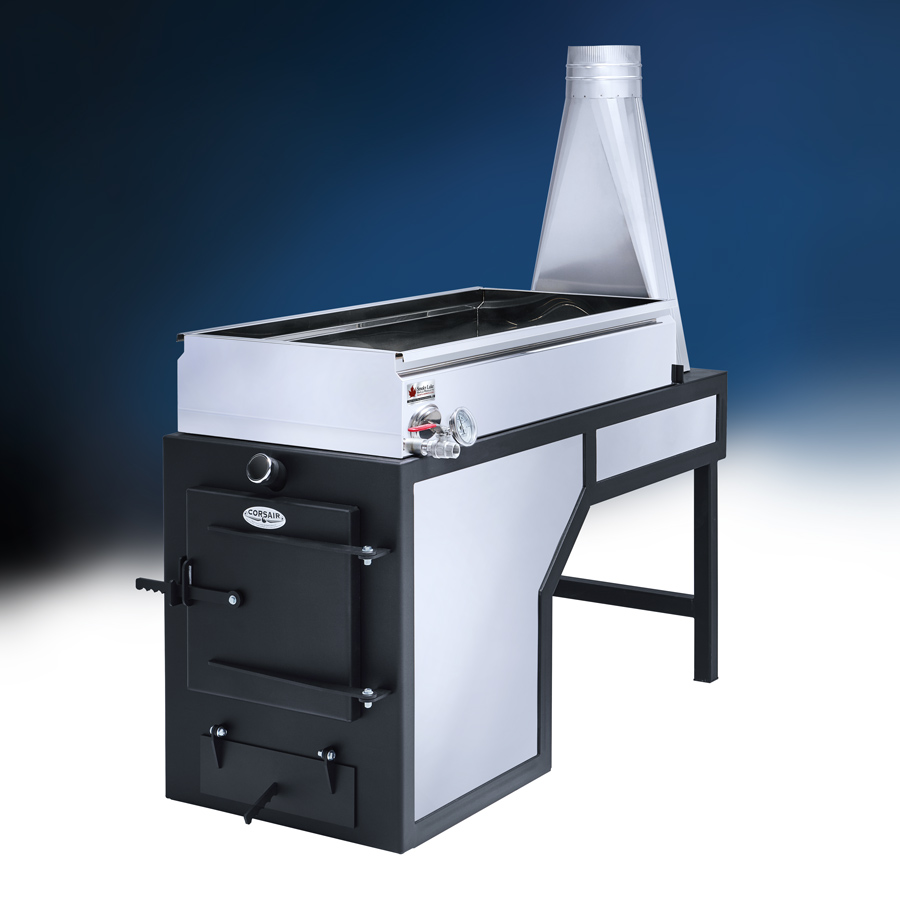 The large loading door nicely compliments the large combustion chamber. This air-tight door will help prevent cold air from being pulled along the bottom of pan, negatively effecting evaporation rate and efficiency.