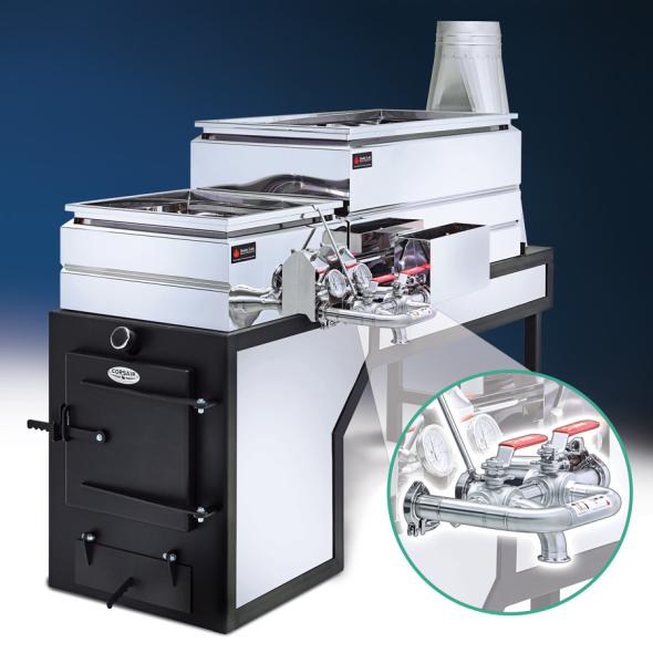 The large loading door nicely compliments the large combustion chamber. This air-tight door will help prevent cold air from being pulled along the bottom of pan, negatively effecting evaporation rate and efficiency.
