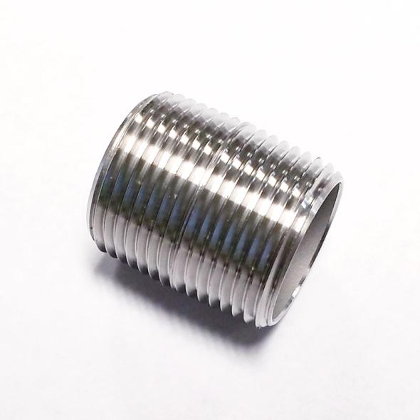 Made out of 304 stainless steel. This piece of hardware is used to connect two fittings that have female threads. The size of this nipple is 1″ NPT.