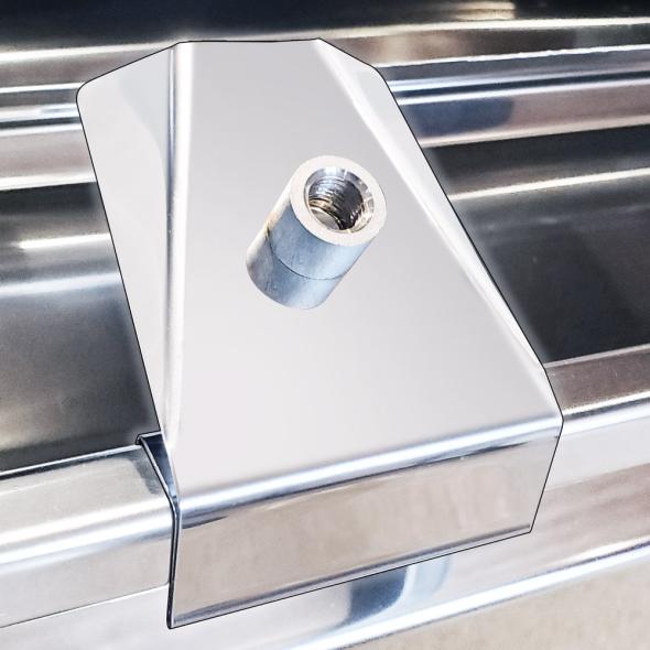 This Probe Clip is used to connect a Syrup Temperature Probe (from an Auto Draw Off System) to an evaporator pan which does not have a built-in accessory port. This Probe Clip enables anybody to use an Auto Draw Off System without making any alterations on the pan itself.