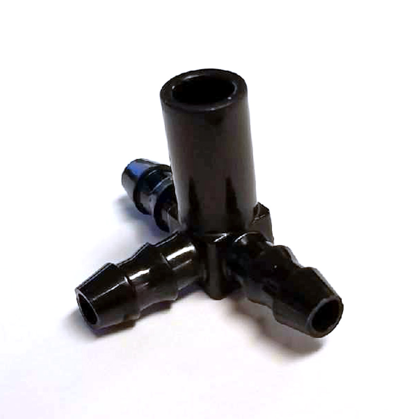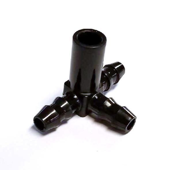This tubing fitting is also sometimes called a Dropline Tee, or Tee-Connector.