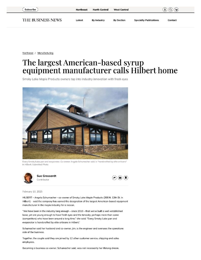 Many thanks to The Business News for featuring Smoky Lake in their February 10, 2025 article.